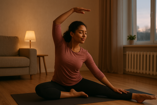 Stretching will also make your body feel better after a hard work day, and your mind will relax. Basic exercises such as neck rolls, hip openers, and forward folds cause a release of muscle tension and increase flexibility.